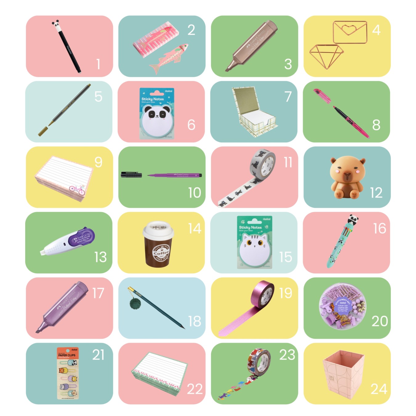 Lot Promo-20%Calendrier de l’Avent papeterie Confetti CampusCompo 24 articles modifiablesBoîte et ruban optionnels