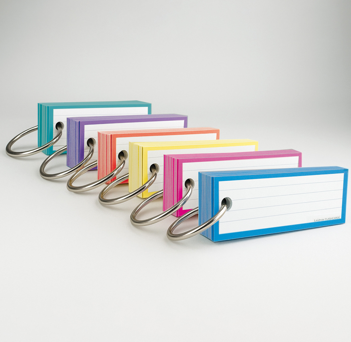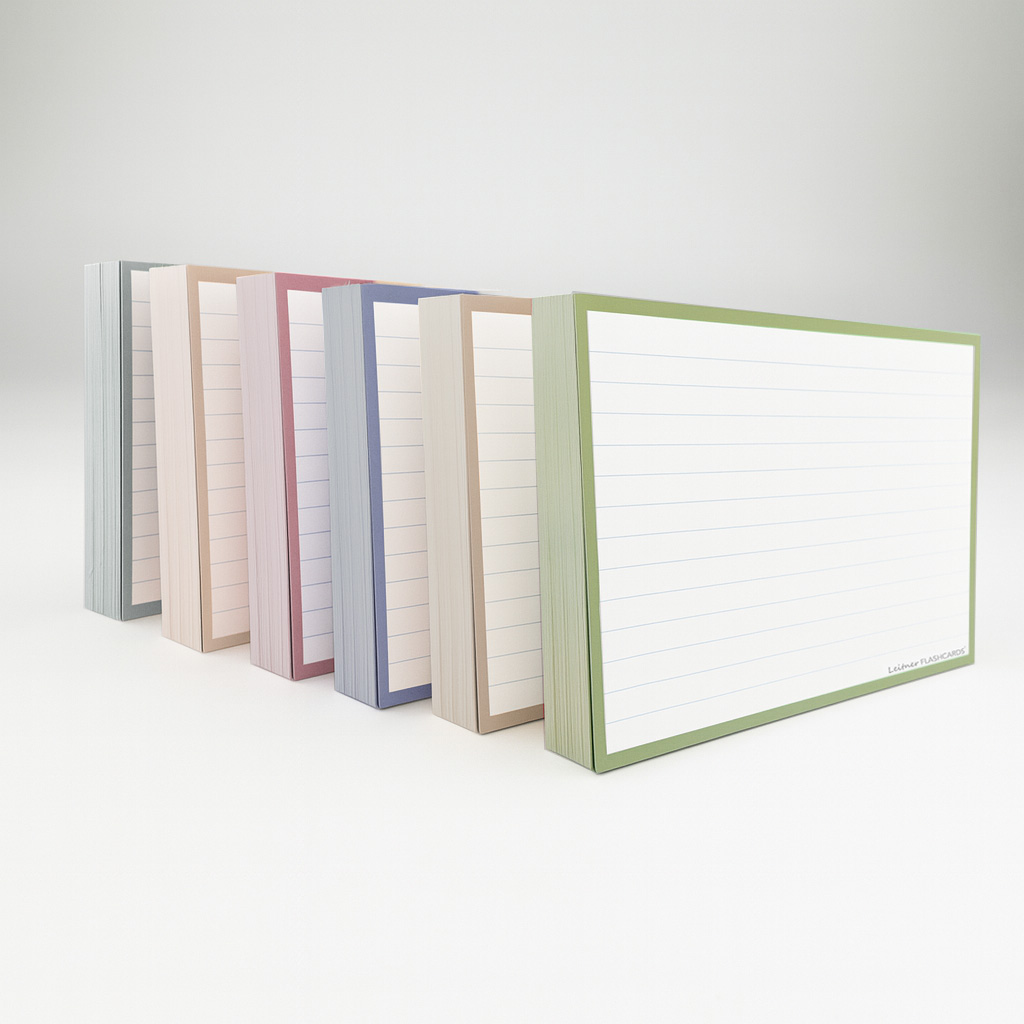 Lot Promo-15%Kit MY COLOR de 300 Flashcards Leitner Vocabulaire pastel6 packs Cartes de mots (3,5x10,5) au choixLignées ou à points