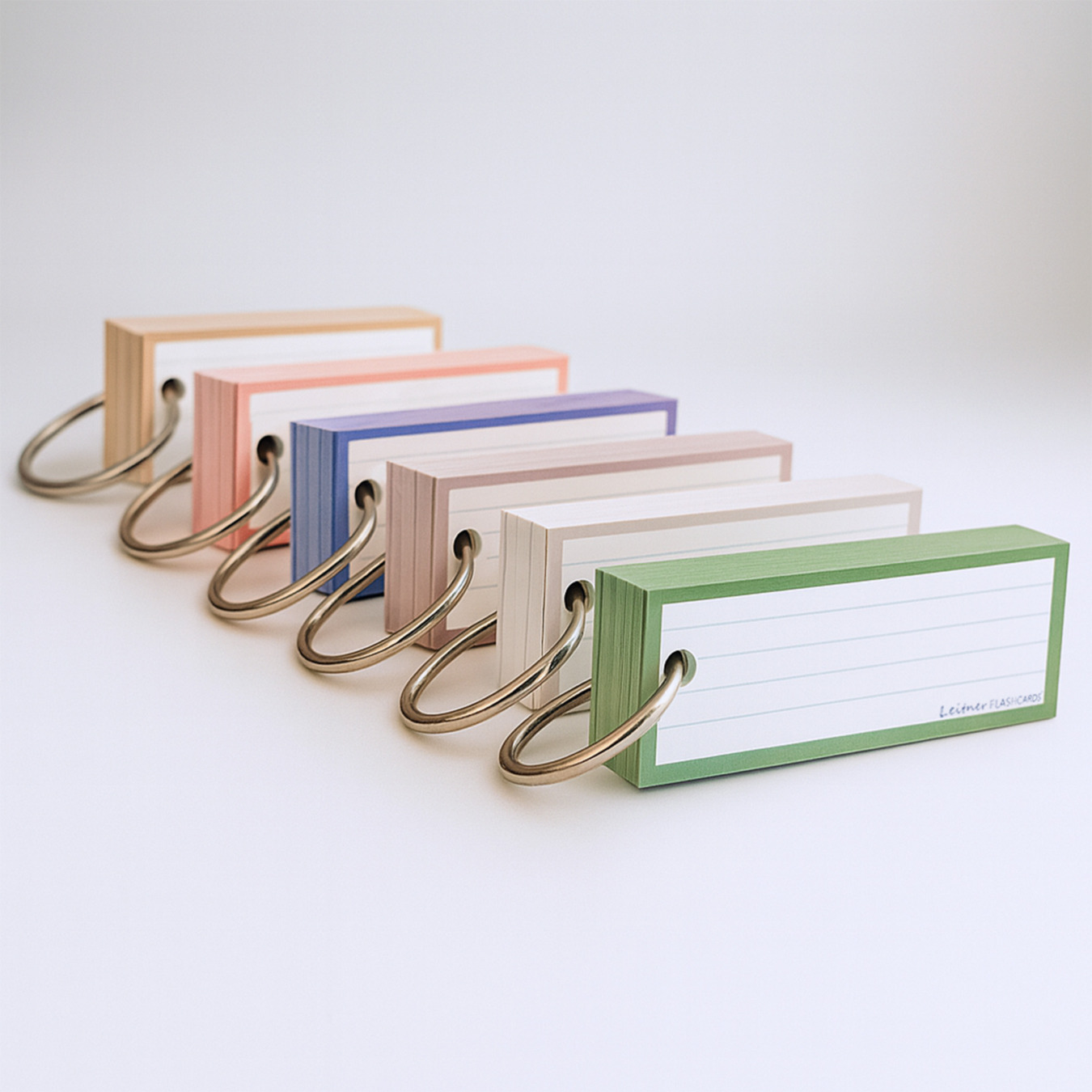 Lot Promo-10%Kit MIX & MATCH de 200 Flashcards Leitner vertes4 packs de Flashcards LeitnerRéglures au choix