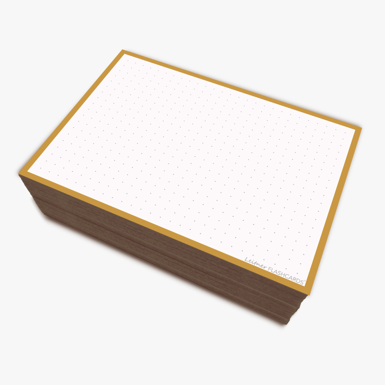 Pack de 50 Flashcards Leitner® ou cartes mémoire, à points, au format A7. Bordure jaune moutarde.
