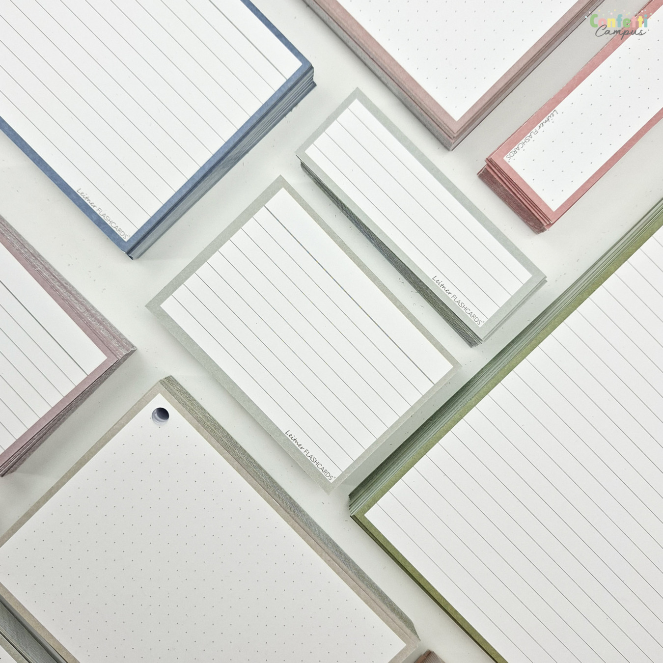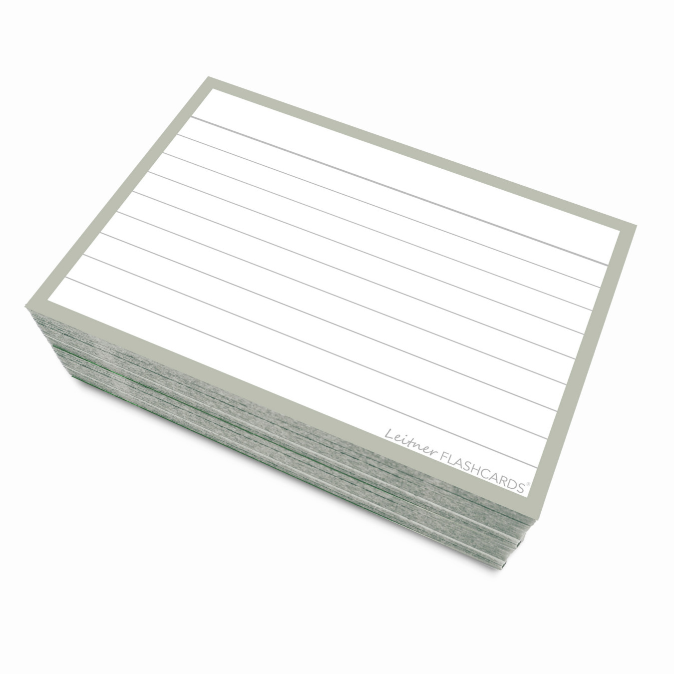 Pack de 50 Flashcards Leitner® ou cartes mémoire, lignées, au format A7. Bordure gris cendre.