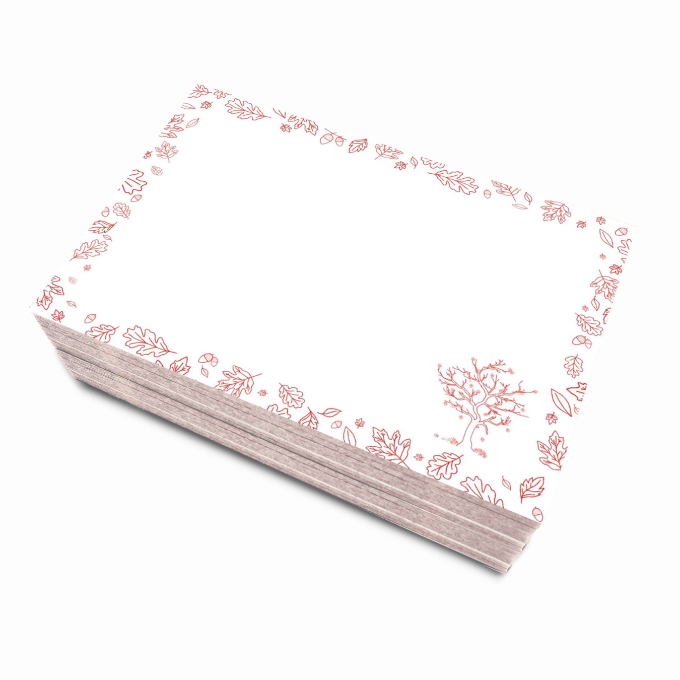 Flashcards Leitner® ou cartes mémoire, sans réglure, au format A7, edition spéciale automne🍁. Pack de 50 fiches, reliées par un élastique, motif arbre, couleur rouge.