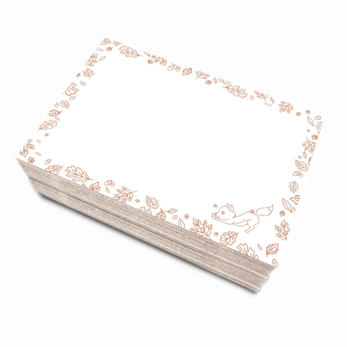 Flashcards Leitner® ou cartes mémoire, sans réglure, au format A7, edition spéciale automne🍁. Pack de 50 fiches, reliées par un élastique, motif renard, couleur orange.