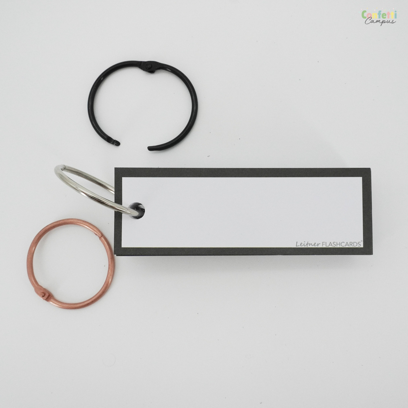 Optionnel: Les flashcards peuvent être "perforées" sur demande. Ajoute à cela un anneau à fermoir et tes cartes mémoire seront ainsi maintenues entre elles et sécurisées. Regroupe-les par thème, examen ou matière. Elles sont également plus faciles à transporter. Pratique pour réviser dans le bus, le tramway ou en voiture. L'anneau fourni est fabriqué en métal solide et possède un fermoir à clic très pratique, facile à ouvrir. Chaque anneau peut rassembler jusqu'à 100 flashcards. Disponibles à l'unité, les flashcards peuvent également être commandées en plus grandes quantités ou combinées avec d'autres produits, à prix réduit, via nos offres à la carte. Elles sont emballées de manière écologique et envoyées par la poste en format lettre ou colis en fonction de leur nombre.