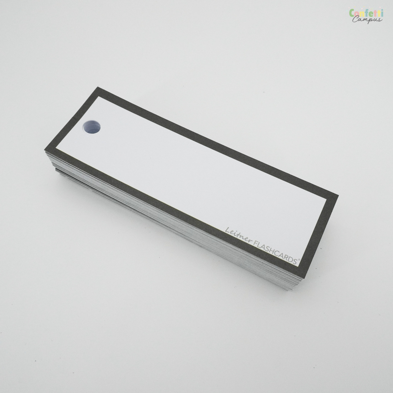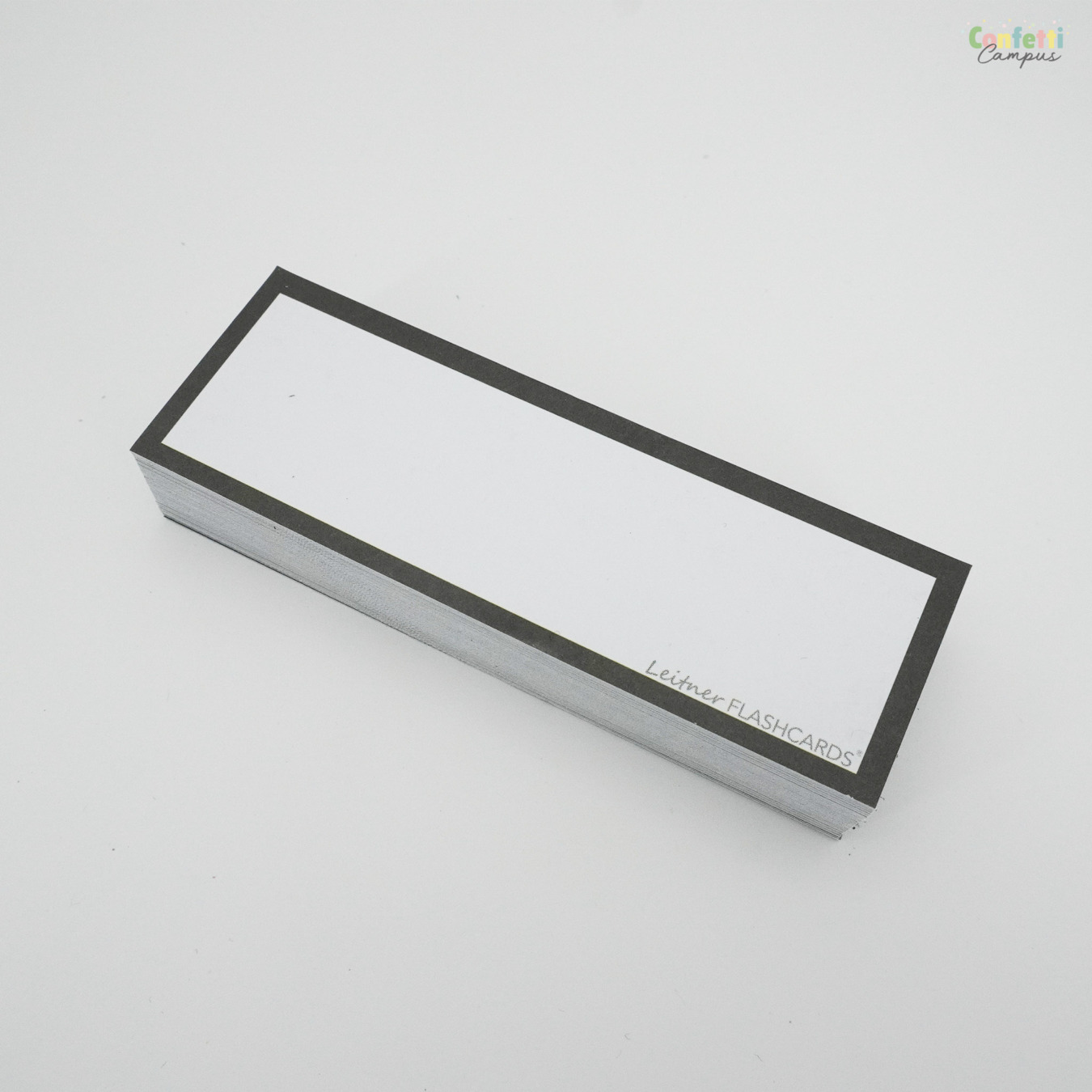 Pack de 50 Flashcards Leitner® Vocabulaire ou cartes de mots, blanches/unies, petit format 3,5x10,5cm. Bordure noire.