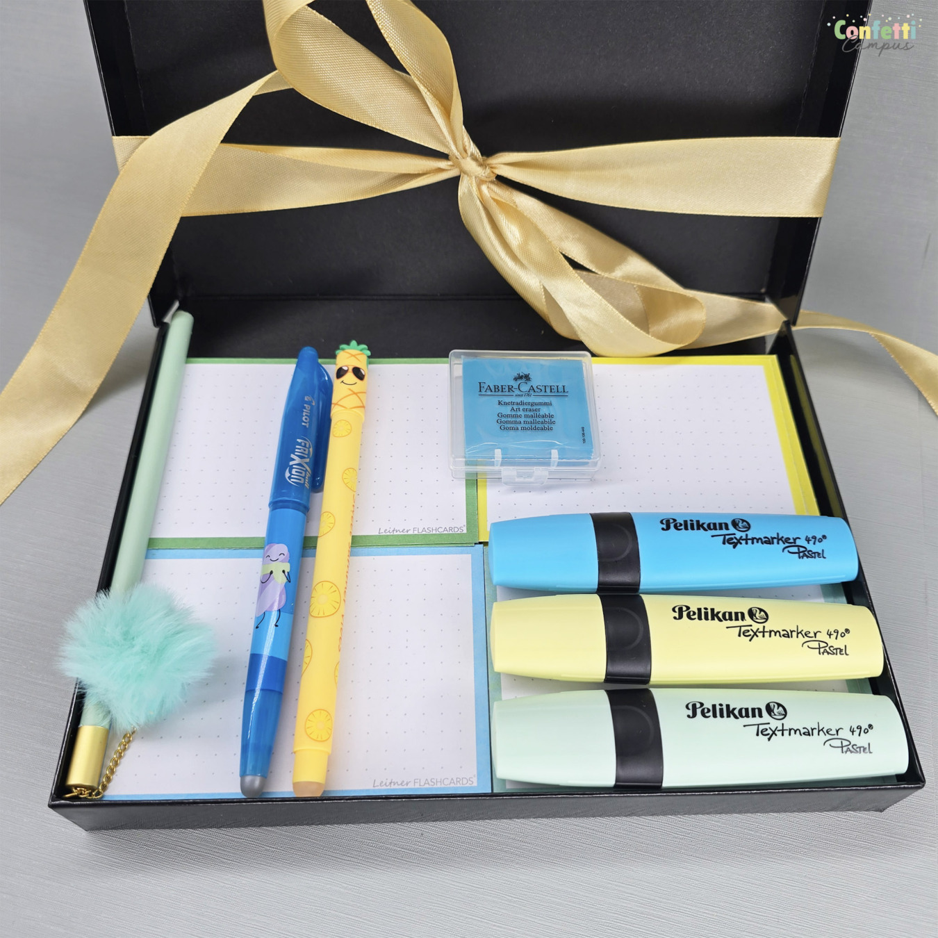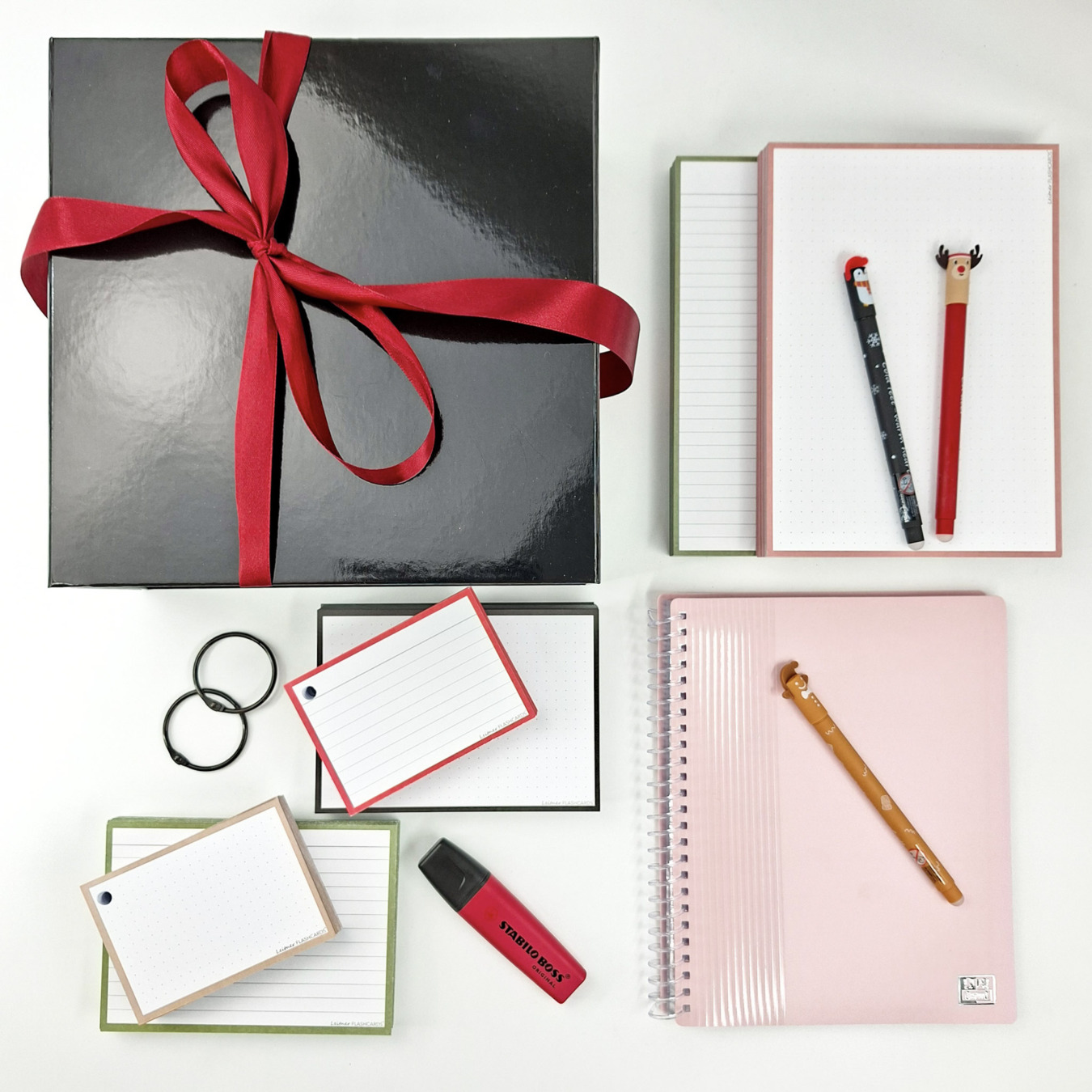 Le cadeau parfait pour créer les plus jolies flashcards. Avec ce coffret cadeau, tu pourras te lancer immédiatement dans la création de jolies flashcards, que ce soit pour apprendre et réviser ou bien pour tes loisirs créatifs: dessin, lettering, calligraphie, Bullet journal, etc...