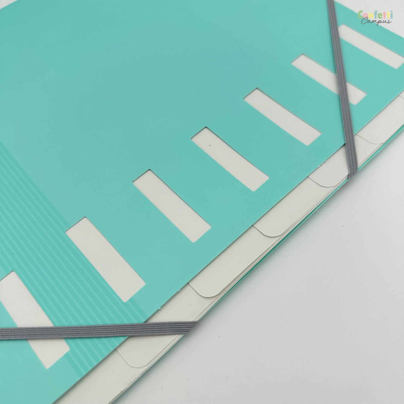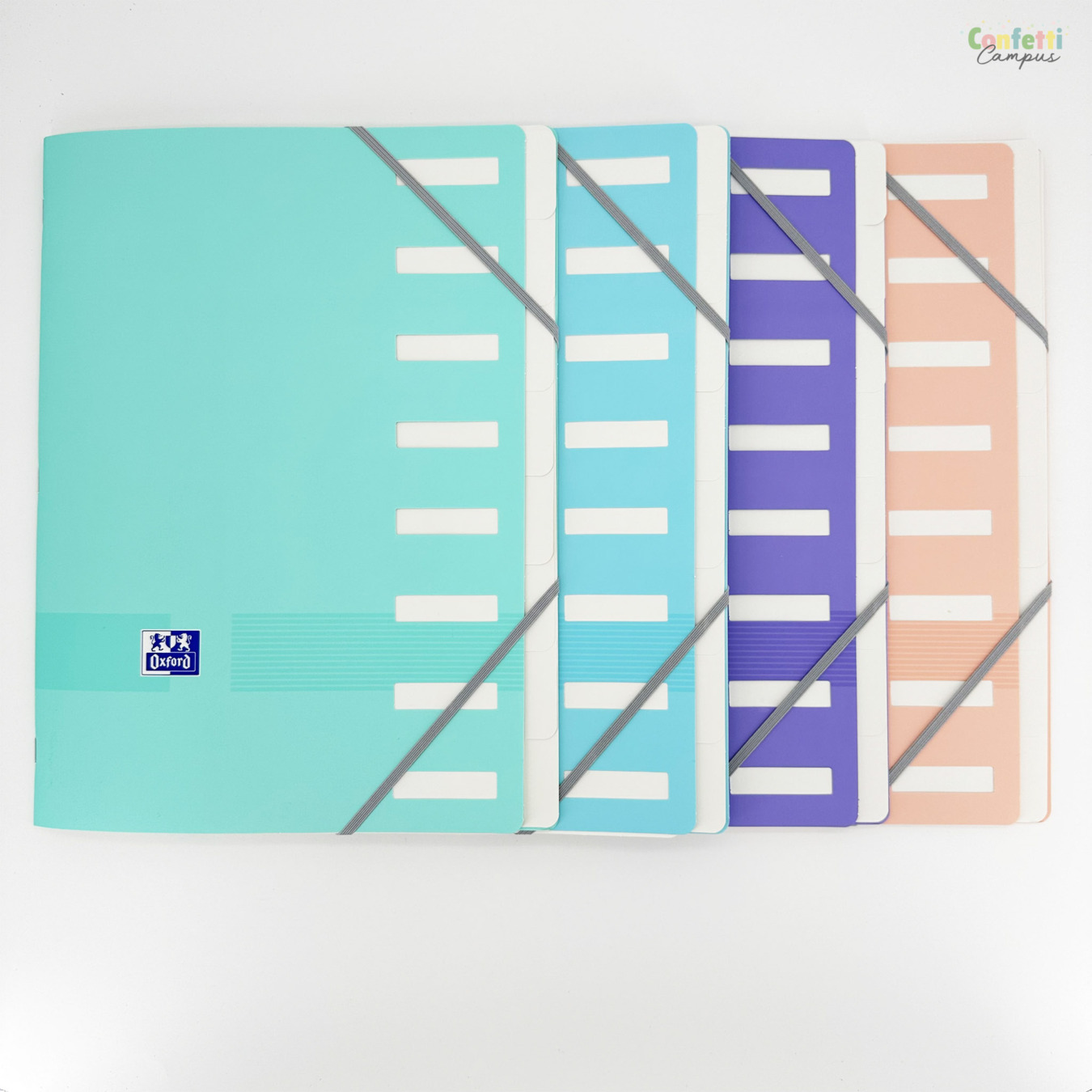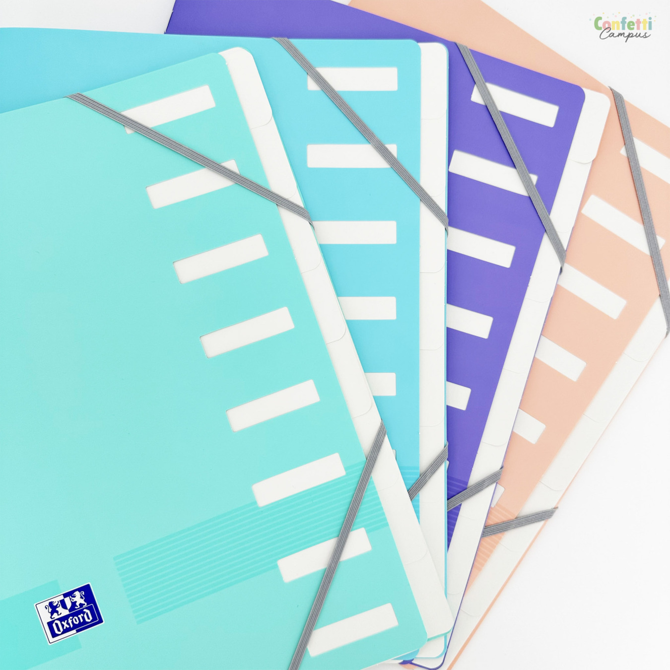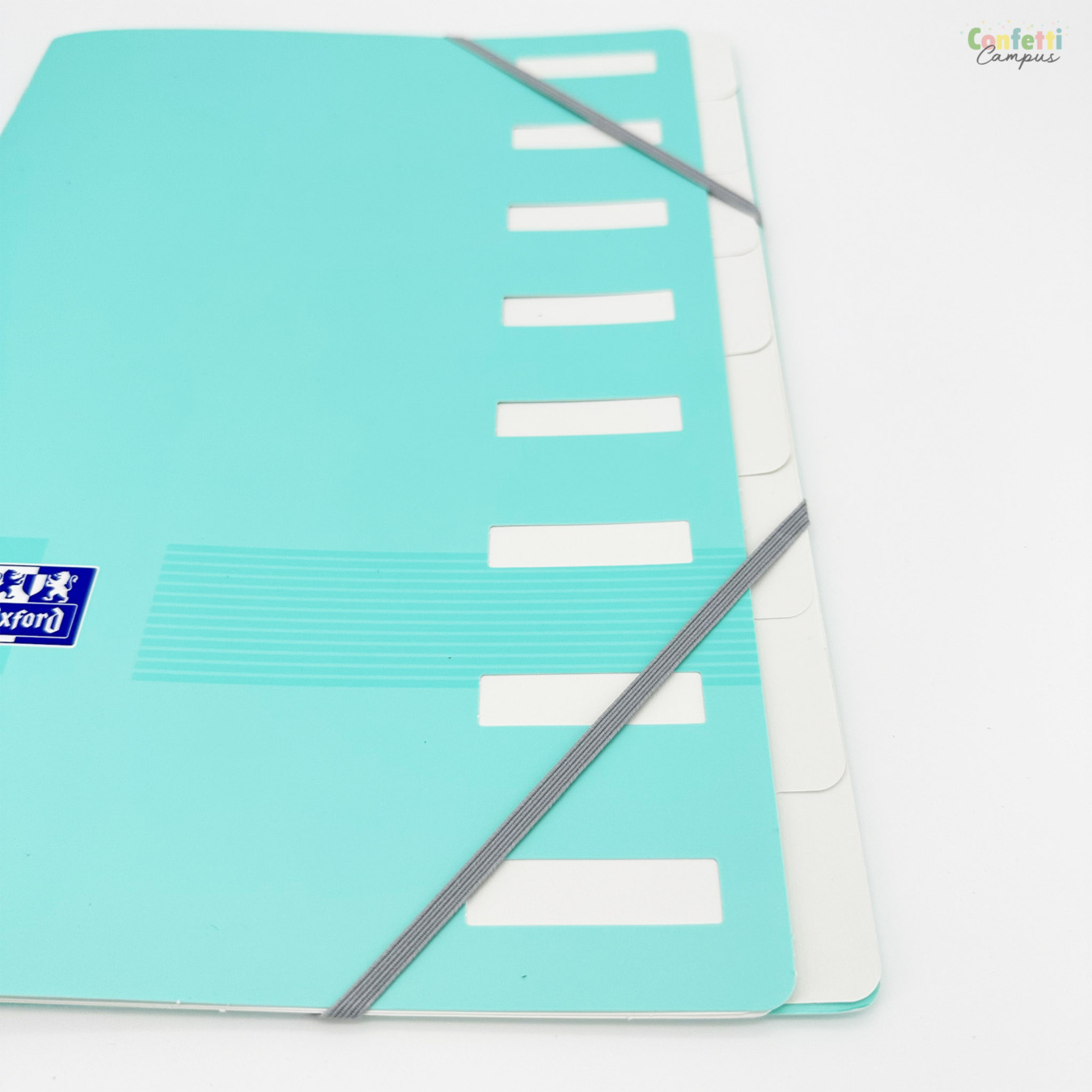 OXFORD COLOR LIFE Trieur A4 agrafé en carte pelliculée toucher "soft touch", 8 positions ou compartiments, zone d'indexation scriptible sur la face avant, turquoise