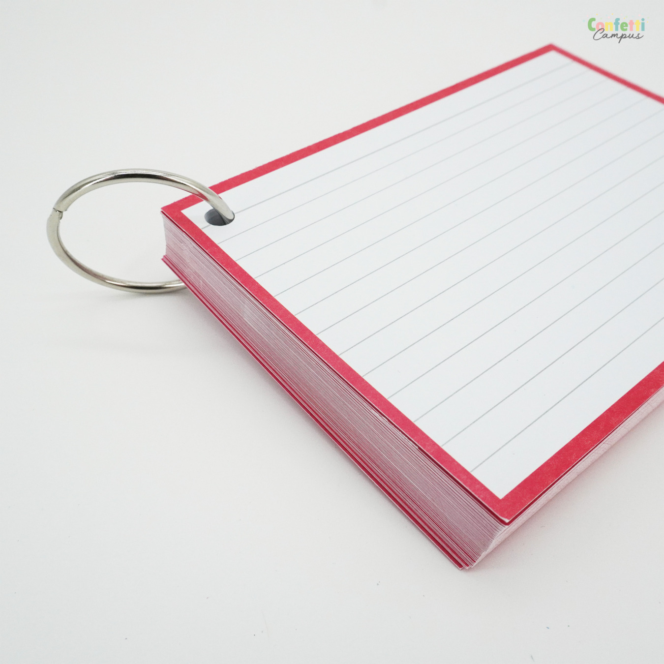- En option: les flashcards peuvent être livrées perforées et reliées avec un anneau métallique de 40 mm de diamètre