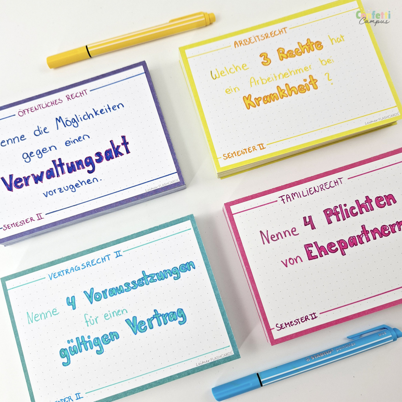 Le cadre de couleur n'est pas un gadget esthétique: il sert en réalité à focaliser ton attention à l'intérieur du cadre. Regarde un peu comme tu peux être captivé.e par ton écran de smartphone...😜. De plus, si tu étudies plusieurs matières, il est conseillé d'allouer une couleur à une matière spécifique. Tes flashcards seront alors plus faciles à trier, à l'oeil.