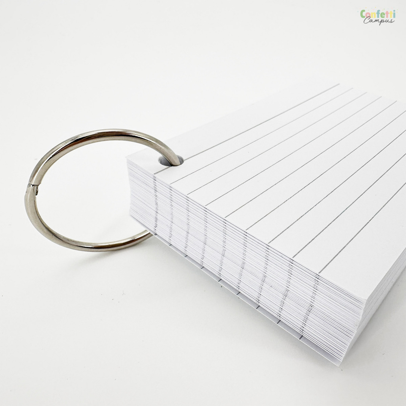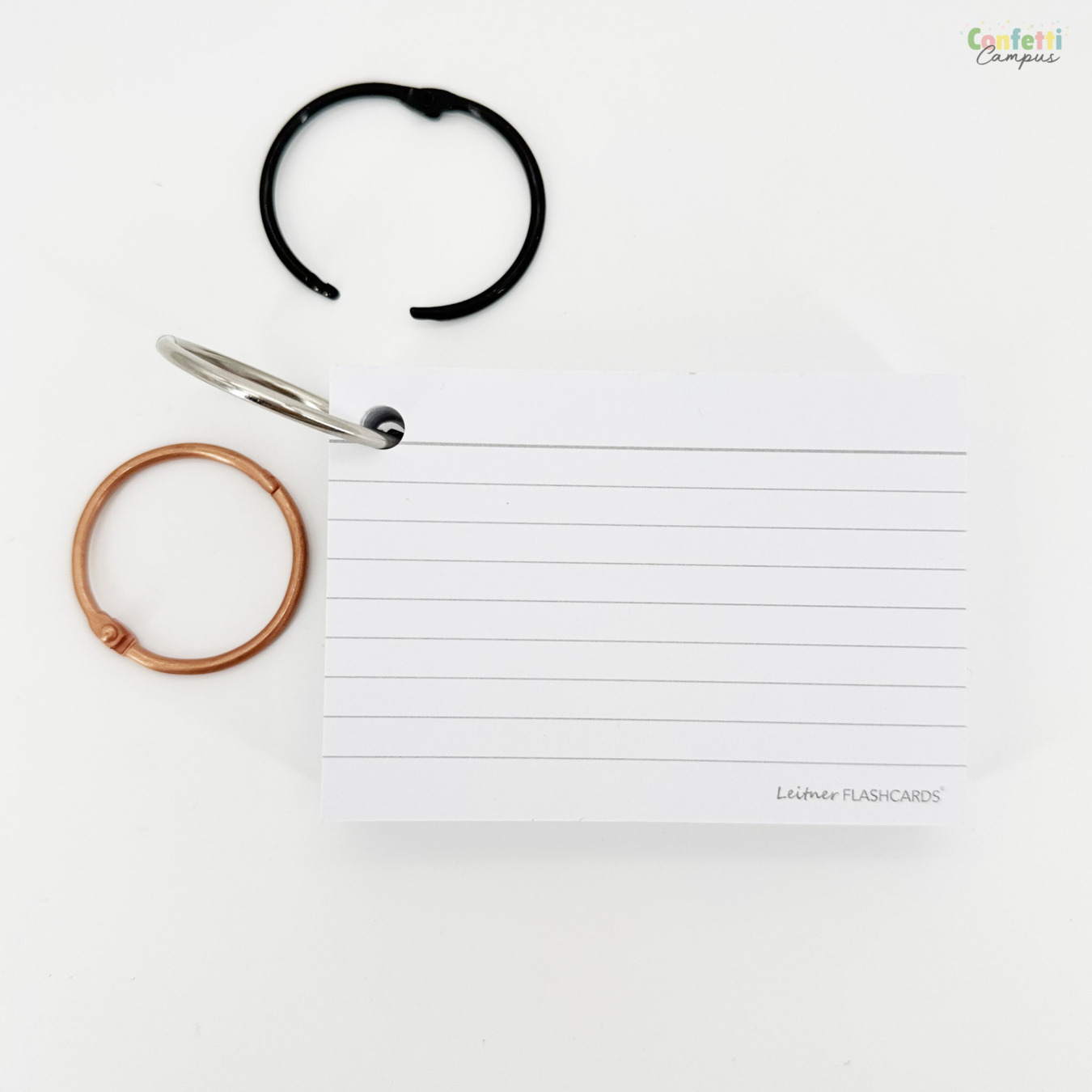 L'anneau fourni est fabriqué en métal solide et possède un fermoir à clic très pratique, facile à ouvrir. Chaque anneau peut rassembler jusqu'à 100 flashcards.