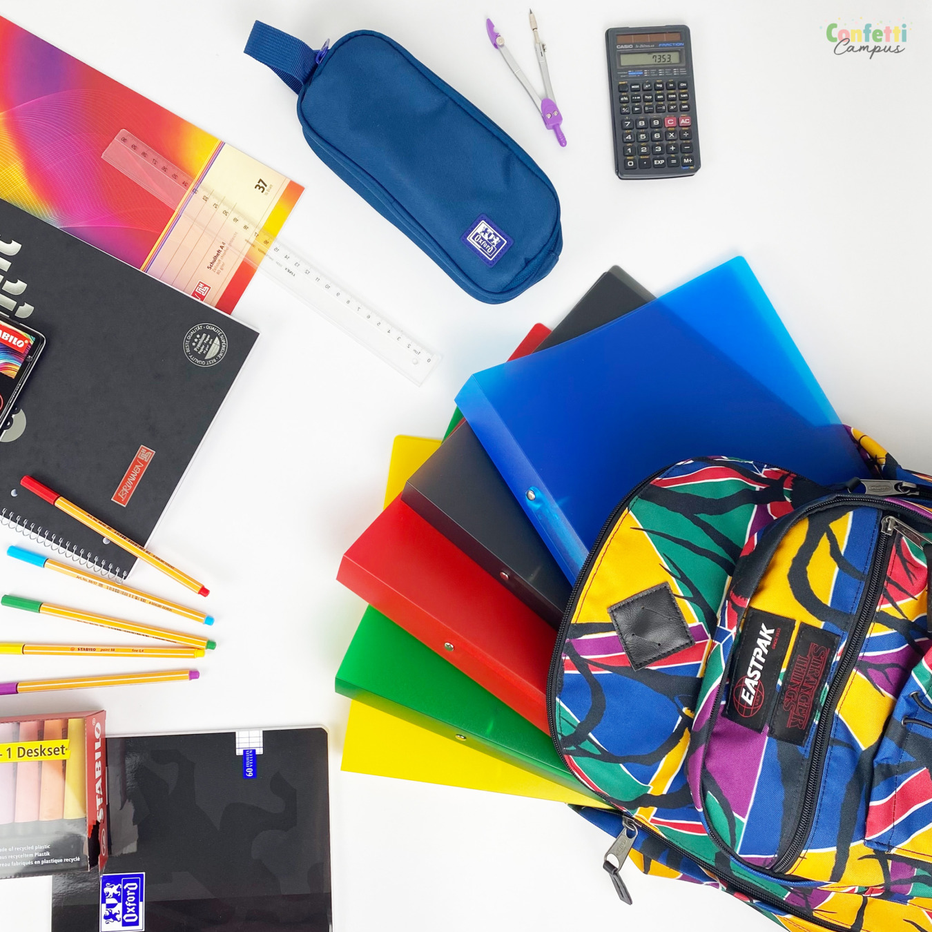 Tu trouveras dans ce kit tout le nécessaire pour remplir ta trousse et ton sac de cours pour la rentrée des classes 2023-2024: des grands cahiers seyès, stylos, stabilo, lutins ou porte-vues, pochettes à élastique, intercalaires, ciseaux, feutres, crayons de couleur et crayons à papier, etc...