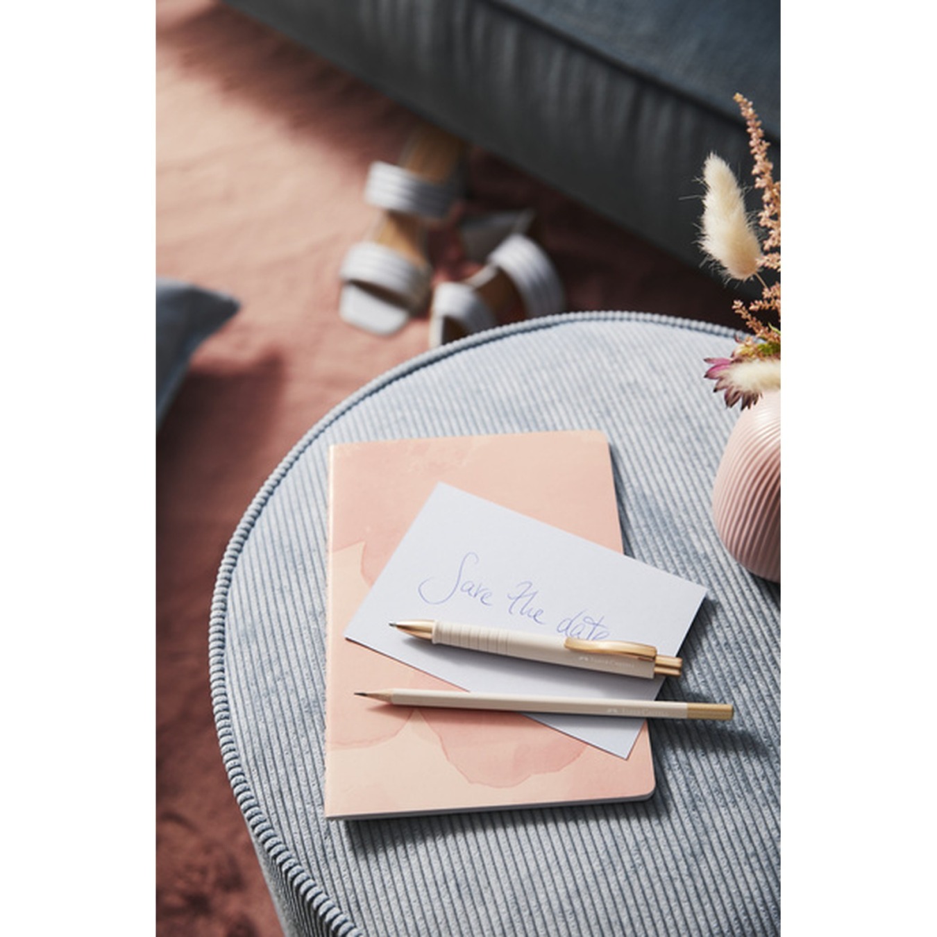 Le Poly Ball XB de Faber-Castell revisite le stylo-bille classique dans une version rose poudré chic, sublimée par de discrètes touches dorées au niveau du clip, du poussoir et de l’anneau.