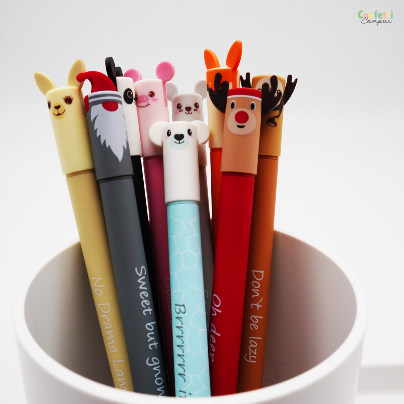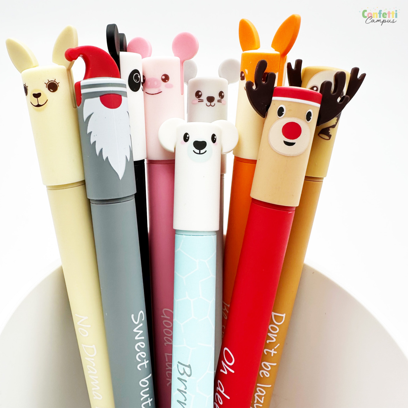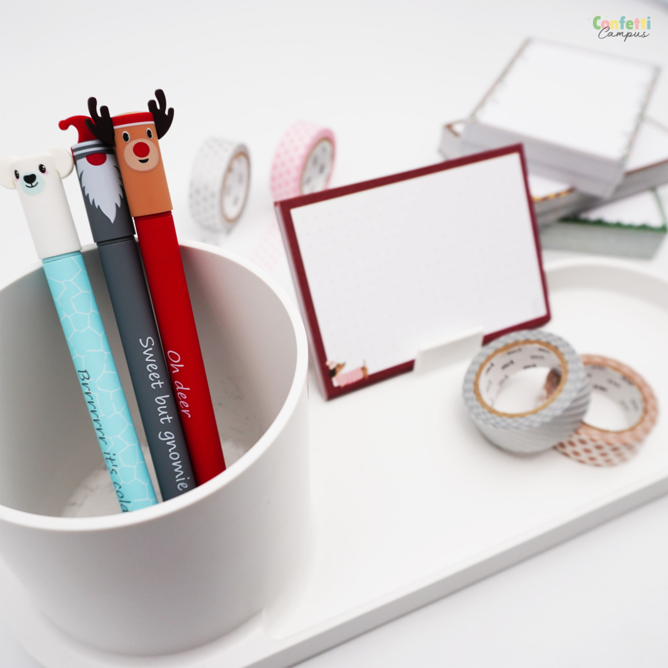 Le stylo à encre gel effaçable se décline en édition spéciale Noël avec ses 3 petits personnages trop mignons: Le pingouin, le renne et Ti biscuit. Effaçe tes petites erreurs en utilisant le capuchon ou la gomme translucide ronde à l'extrémité du corps du stylo. Vendu en lot de 3 (3 modèles différents).