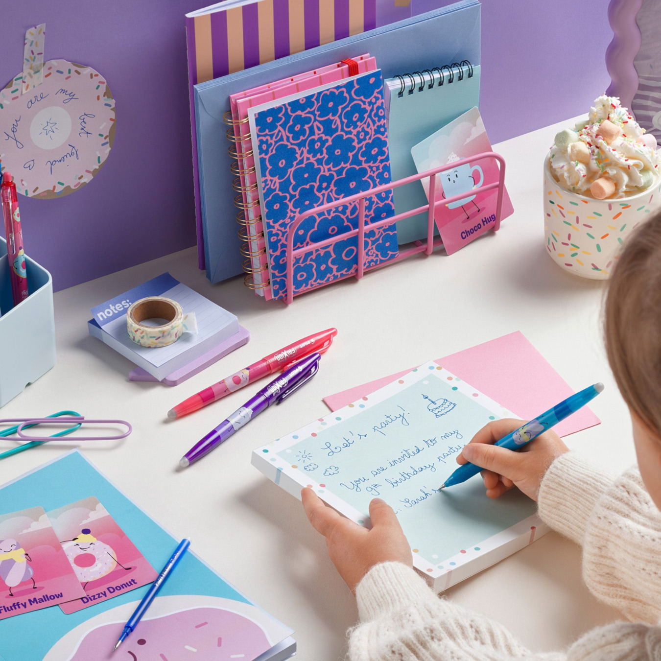 Disponible dans une large gamme de couleurs vives et tendance, le Stylo Roller Effaçable Pilot FriXion Ball Clicker se décline ici en version ultra-gourmande grâce à cette édition limitée Sweet paradise: son décor rose orné de donuts deviendra vite ton compagnon de tous les jours, que ce soit à l'école, à la maison ou au bureau..